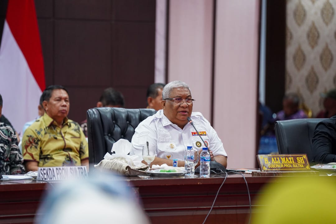 Gubernur Sultra, Ali Mazi saat silaturahmi bersama insan pers di Aula Merah Putih Rujab Gubernur. Foto : Diskominfo Sultra