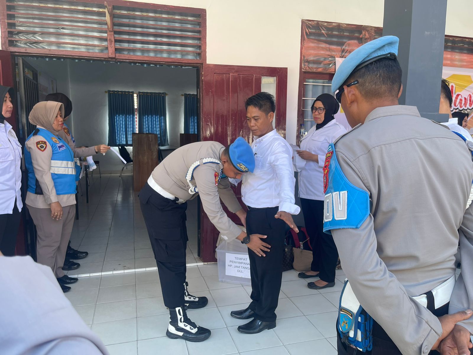 Peserta tes PPPK Polri 2023 saat dilakukan body checking oleh pihak pengawas. Foto: Ist