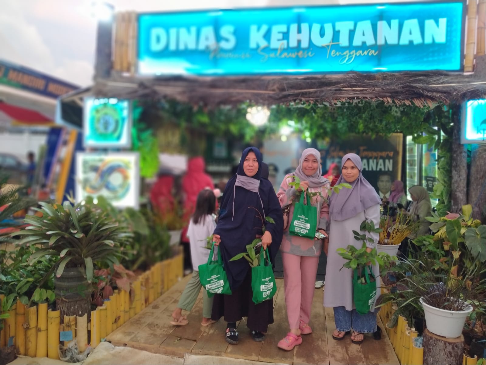 Masyarakat Koltim saat berkunjung di Stand pameran Dinas Kehutanan untuk mendapatkan bibit pohon produktif. Foto : Ist.