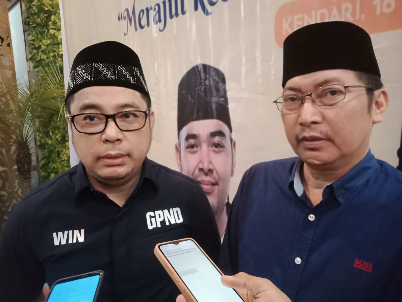 Ketua DPW GP Nasdem Sultra, Arwin (kiri) bersama Abdul Rasak. Foto: La Niati,Keratonnews.Co.Id