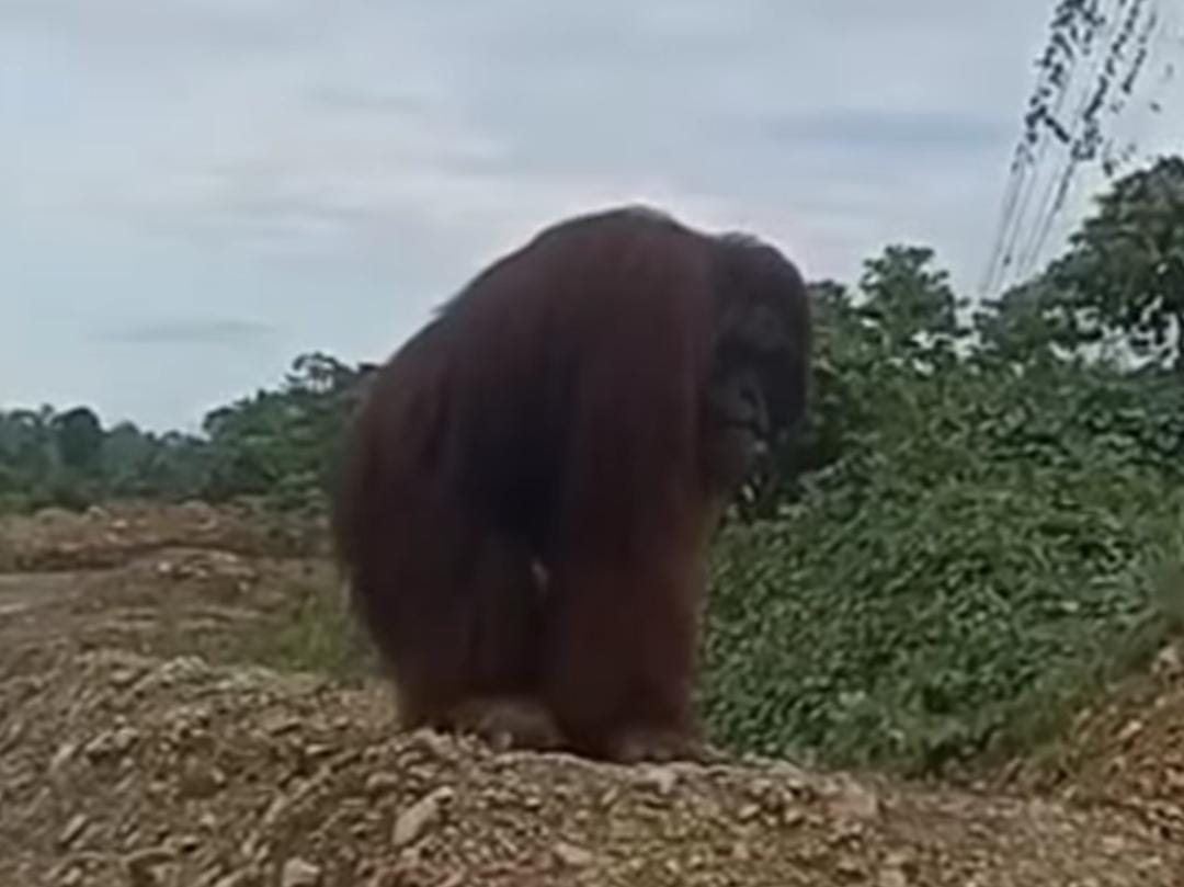 Orang utan berukuran besar saat muncul di area pertambangan. Foto :Ist
