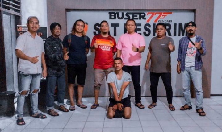 Panjul (Duduk) setelah diamankan Buser 77 Sat Reskrim Polresta Kendari. Foto: Ist