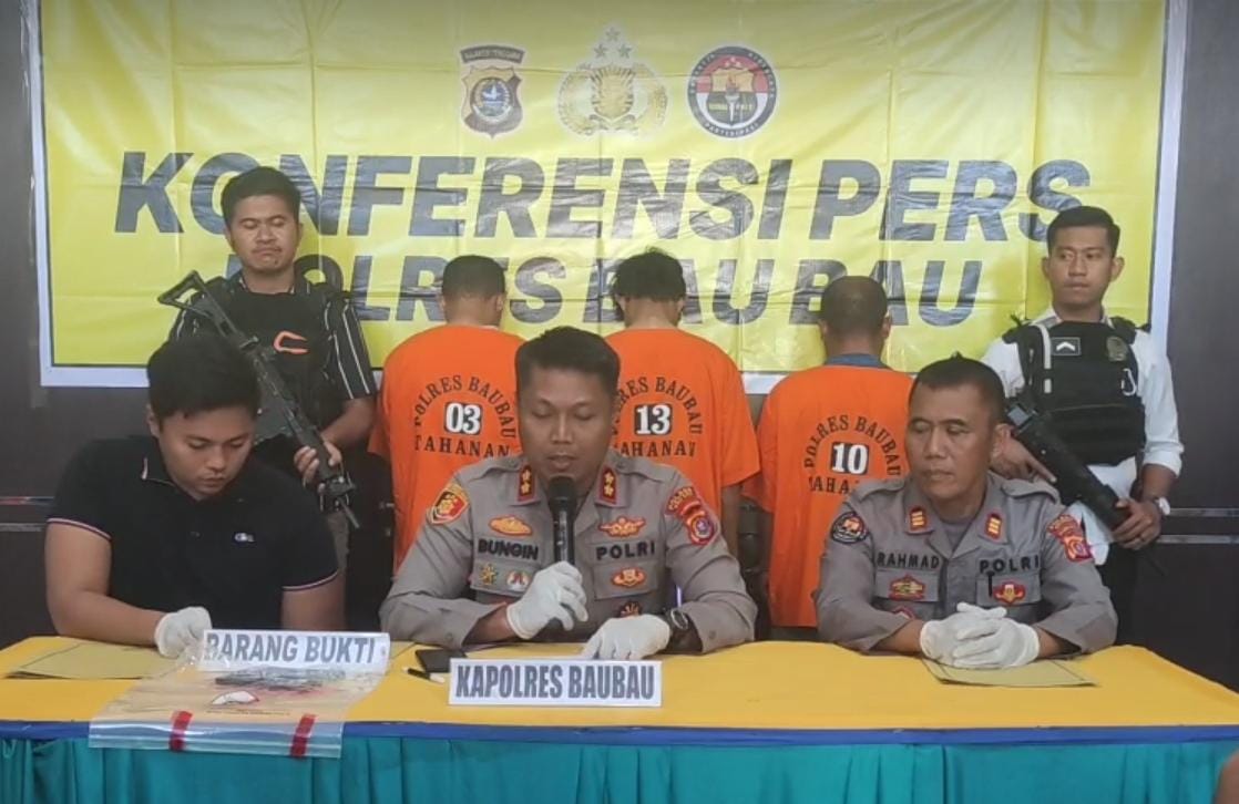 Kapolres Baubau saat menggelar Konfrensi Pers terkait Pengungkapan Kasus Penganiayaan Wartawan Kamis (27/7/2023) foto : bardin keratonnews.co.id