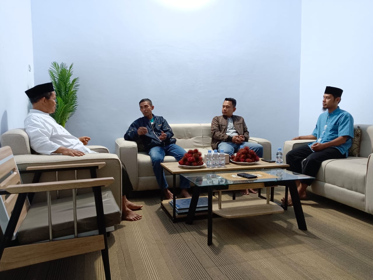 Ketua PWI Sultra Sarjono didampingi Wakil Ketua Bidang Kesejahteraan PWI Sultra, Mochammad Irwan berkunjung ke Pusat Dakwah Wahdah Islamiyah (WI) Sultra. Foto : Ist.