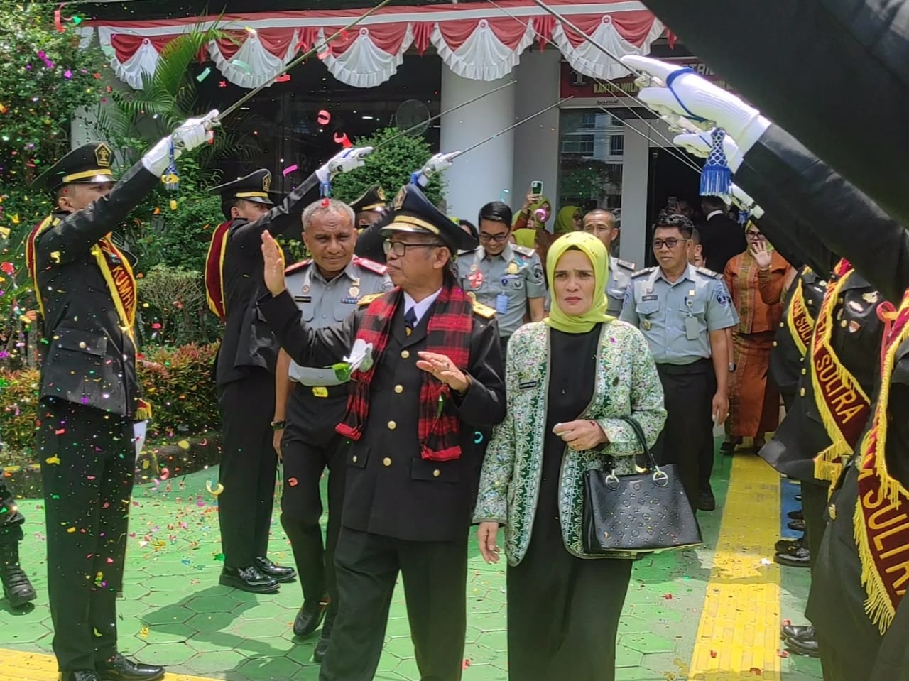 Kadivpas Kemenkumham Sultra, Muslim didampingi istri saat mengikuti rangkaian perpisahan purbakti. Foto: Ismail, KN