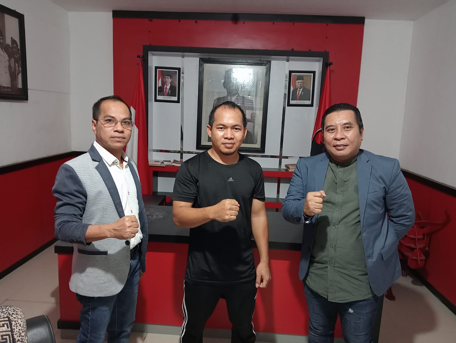 Lasion Officer LO (LO), Hidayatullah (kanan) didampingi Ketua Dewan Pakar dan Tim Strategis Pemenangan, Fachmi Djambak (kiri) dan Tim Penjaringan Balon Walikota PDIP Kota Kendari, Gusti Made Sudiarmayun. Foto: La Niati,Keratonnews.Co.Is