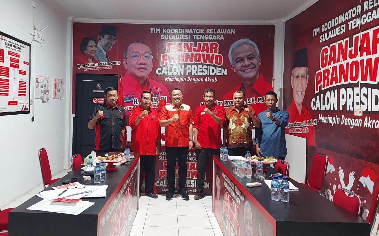 Bakal calon Walikota Kendari, Aksan Jaya Putra bersama kader PDIP usai wawancara di Kantor PDIP Sultra. Foto: La Niati,Keratonnews.Co.Id