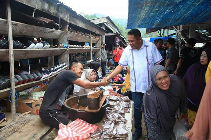 Bakal calon Gubernur Sultra, Ir. Hugua saat menemui pedagang. Foto: Dok Pribadi