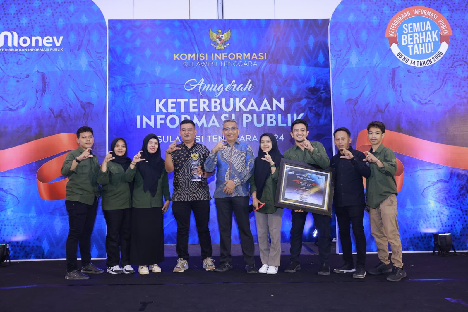 Pose bersama usai Bombana menerima penghargaan terbaik pertama Anugerah Keterbukaan Informasi Publik. Foto : Diskominfo Bombana.
