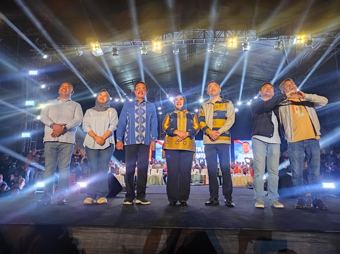 Nurr Alam bersama tiga bacalon kepala daerah saat diacara pamitan tertunda. Ismail KN