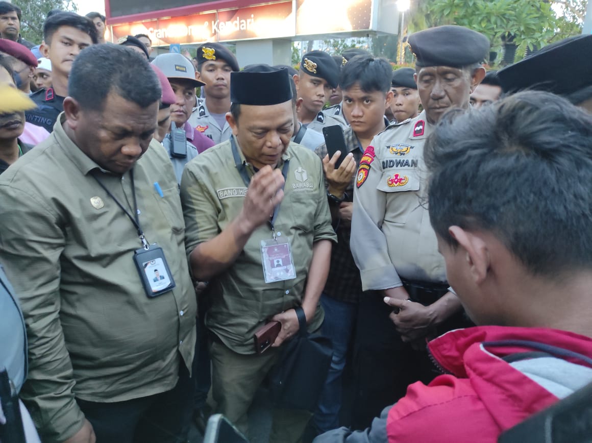 Komisioner KPU Sultra saat temui massa aksi soal dugaan adanya penggelembungan suara dari Caleg Nasdem. Foto: Ismail, KN