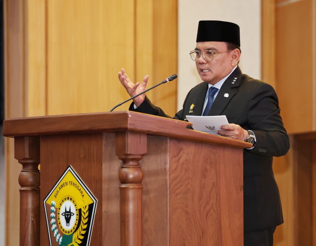 Pj Gubernur Sultra, Andap Budhi Revianto saat memberikan sambutan. Foto: Kominfo Sultra