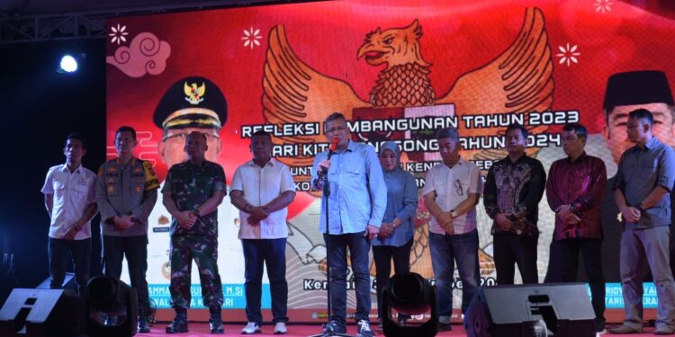 Pj Wali Kota Kendari, Muhammad Yusup memberikan sambutan saat refleksi pembangunan tahun 2023. Foto : Ist.