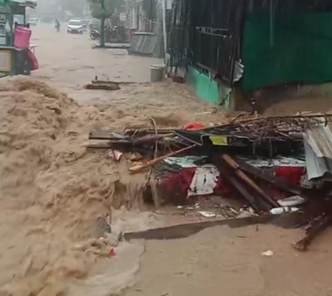 Kondisi banjir di Jalan Drs. Moh Hatta saat dilanda hujan deras sekitar 2 jam berlangsung. Foto: Ist