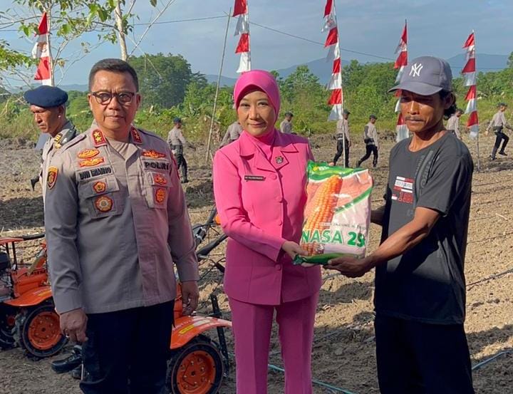 Polda Sultra saat memberikan bantuan kepada petani. Foto: Humas Polda Sultra