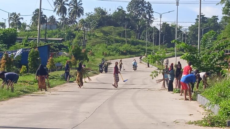 Warga Kelurahan Mata saat membersihkan lingkungan. Foto : Diskominfo Kendari.