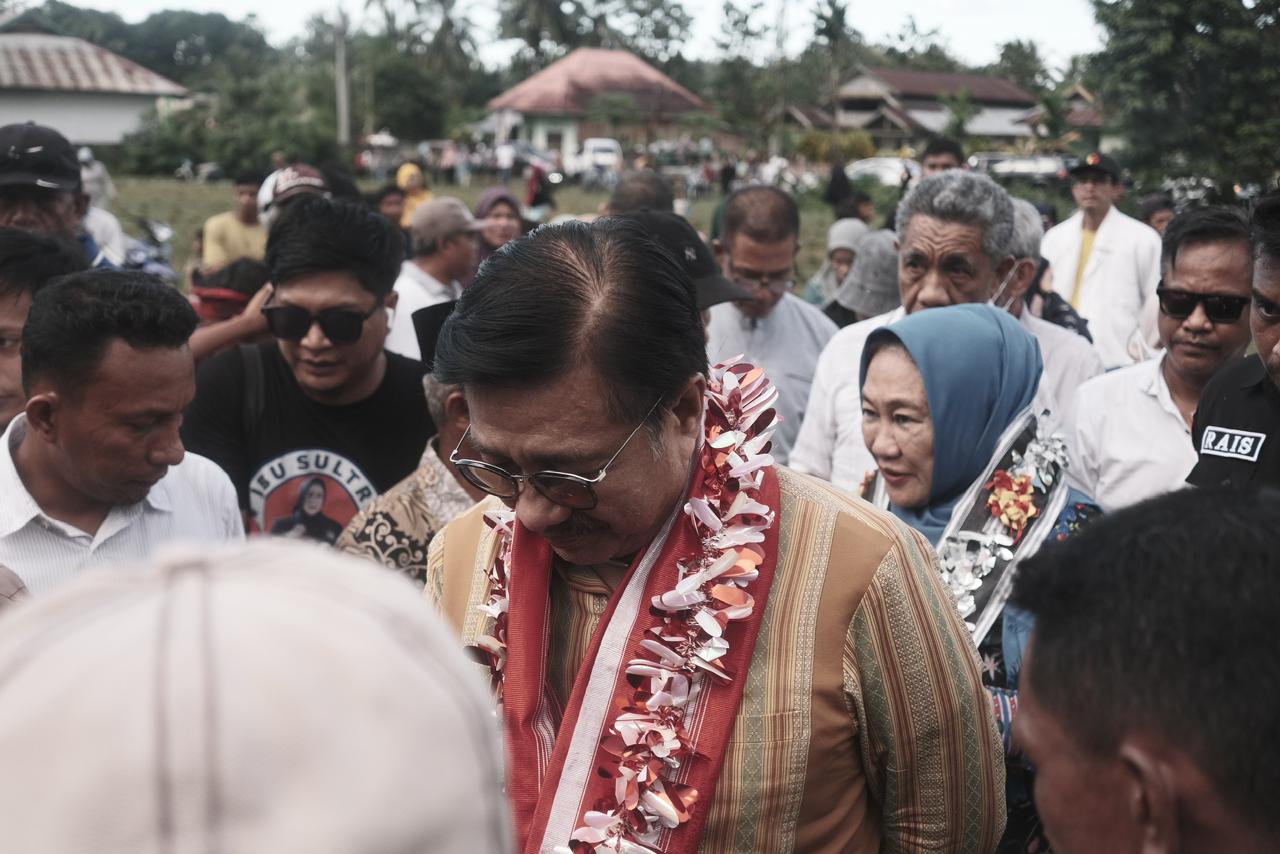 Nur Alam bersama istrinya yang juga Calon Gubernur, Tina Nur Alam saat kunjungan di Tongkuno. Foto : Pesan WhatsApp.